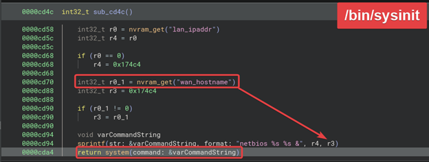 sprintf(var, "netbios %s %s &", r4, r3) // r3 = wan_hostname