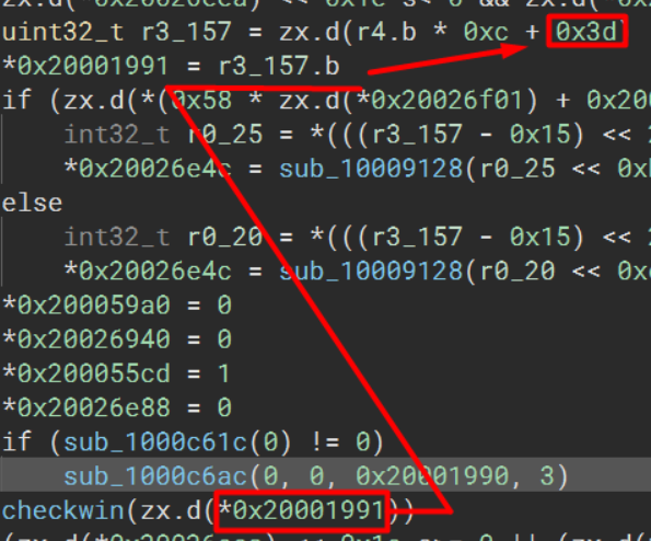 With these mappings we can decipher the string compared in the checkwin function to the equivalent keys on the keyboard.