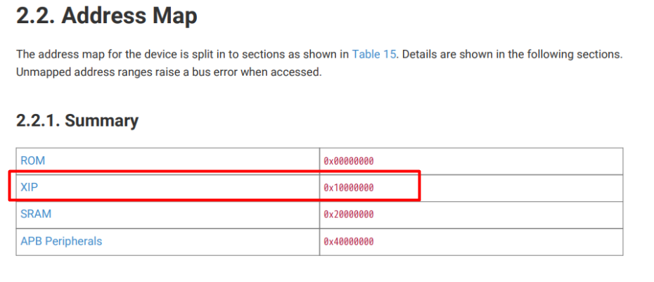 The MCU is a rpi2040 which makes use of the “execute in place” feature. This is a feature that improves performance by enabling execution directly in flash storage rather than execution in the MCU’s limited memory area. It is important that we keep this in mind before starting to analyze the firmware. Firmware has no entry point and instead has a defined address at which program execution begins. We can find this base address by viewing the rpi2040 datasheet and navigating to the “Address Map” page from the table of contents. The base address will be the XIP address (execute in place). We need to specify this address as the base address in whatever we use to analyze the firmware to load the correct segment.