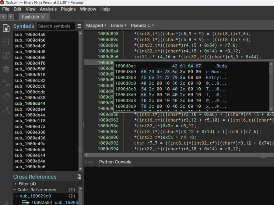 Flash extraction and reversing of the DC30 badge firmware.
