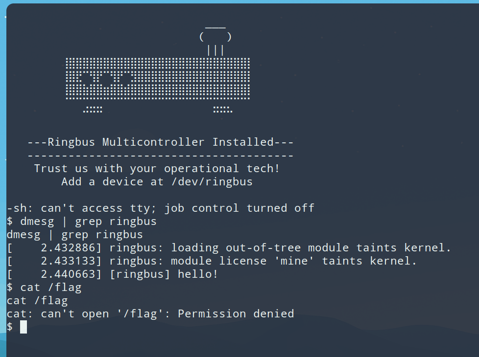 Although I was directed to make a challenge that was embedded themed, I also really wanted to make my first kernel heap challenge, so I thank you for suspending disbelief and accepting that an embedded device would use a semi-recent kernel or (more obviously) a SLUB allocator. I designed this challenge to highlight some recurring themes one might find when doing vulnerability research in kernel modules such as bad lifetime management (deferred frees + race windows) compound into powerful primitives when paired with general allocator exploitation techniques such as heap spraying. The intentional exploit path here, was intentionally layered and sequential, leak, spray, type confusion, overflow, and finally AAW.