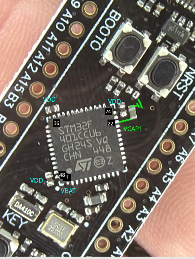 Verify visually that C8 is the VCAP decap. https://github.com/WeActStudio/WeActStudio.MiniSTM32F4x1