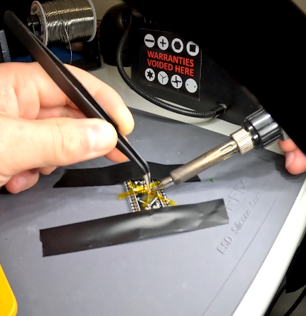 - My perfboard does not have connected rails. If this is the case for you, you can place single copper strands to create solder bridges (bridges won’t hold over the perfboard silk no matter how big you make them, trust me).